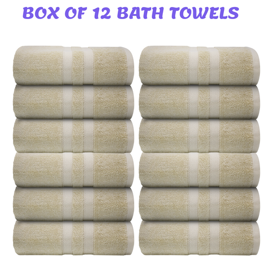 Wholesale Turkwell Bath Towels 100% Combed Cotton, 27x54 in, Beige, BOX of 12