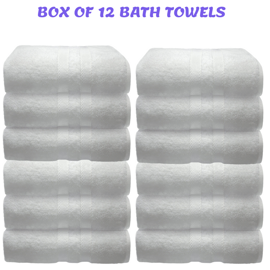 Wholesale Turkwell Bath Towels 100% Combed Cotton, 27x54 in, White, BOX of 12