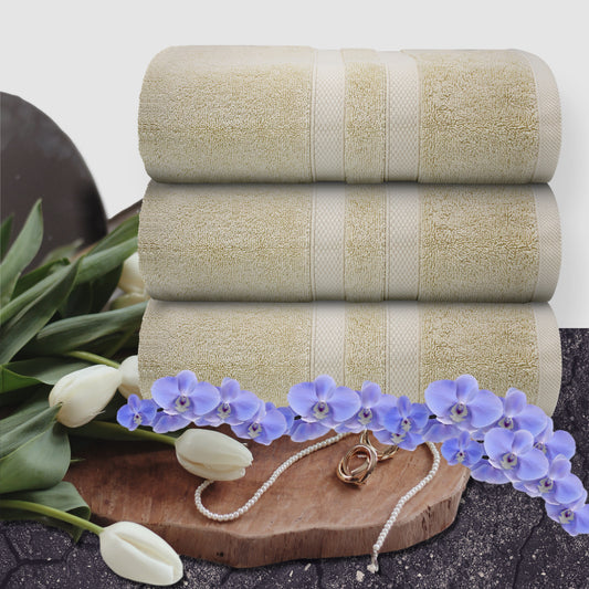 Turkwell Luxury Bath Towels Set, 100% Combed Cotton, 27x54 in, Beige Bath Towel Set of 3