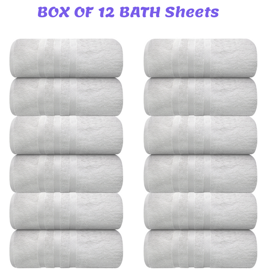 Wholesale Turkwell Bath Sheets Towels, 100% Combed Cotton, 35x70 in, Extra Large, White, BOX of 12
