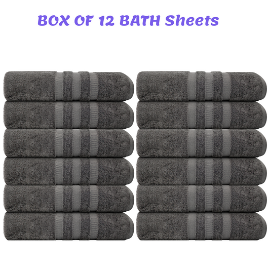 Wholesale Turkwell Bath Sheets Towels, 100% Combed Cotton, 35x70 in, Extra Large, Gray, BOX of 12